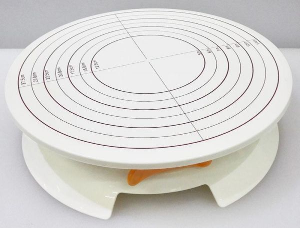 cake maker to measure the diameter. Bottom base uses rubber ring for anti skid.The area of top is approximately equal to that of bottom, which is make more stable rotation and prevent the cake from leaving.