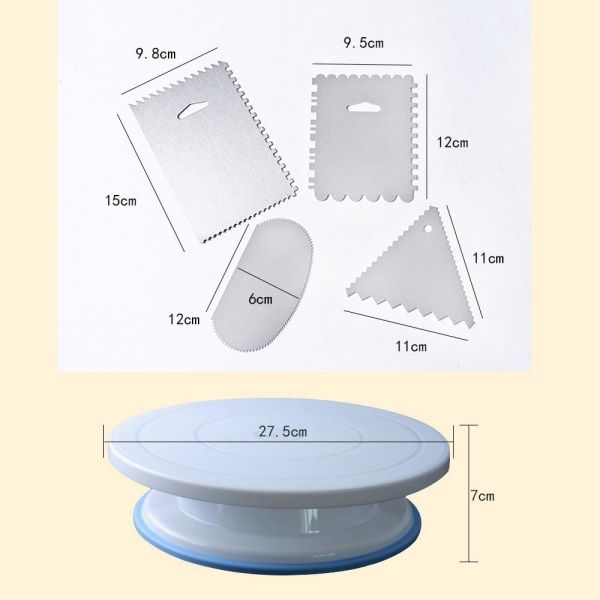 - Number of Pieces : 1x Cake Stand, 2x Icing Spatula, 4x Icing Smoother