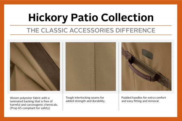 The Hickory Series from Classic Accessories offers rugged good looks while providing years of weather protection. These thoughtfully designed garden furniture covers deliver peace of mind and confident protection.