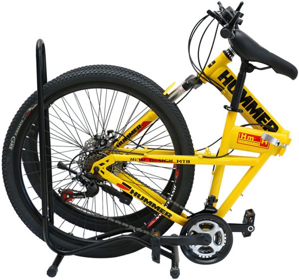 Specifications : Brand : HummerColor :YellowBike Brake Type : Disc BrakeFrame Material Type : SteelProduct weight : 14.5KgBicycle Type : Folded BikeWheel Size : 26 InchNumber of Speeds : 21