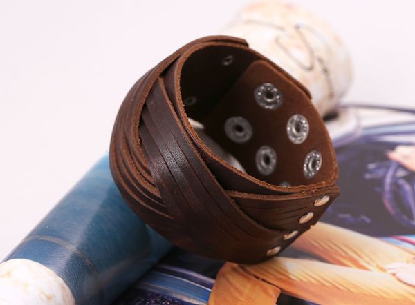 Vintage Multilayer Leather Woven Wide Bracelets & Bangles for Men Charm Wristband Jewelry Boy Girl G