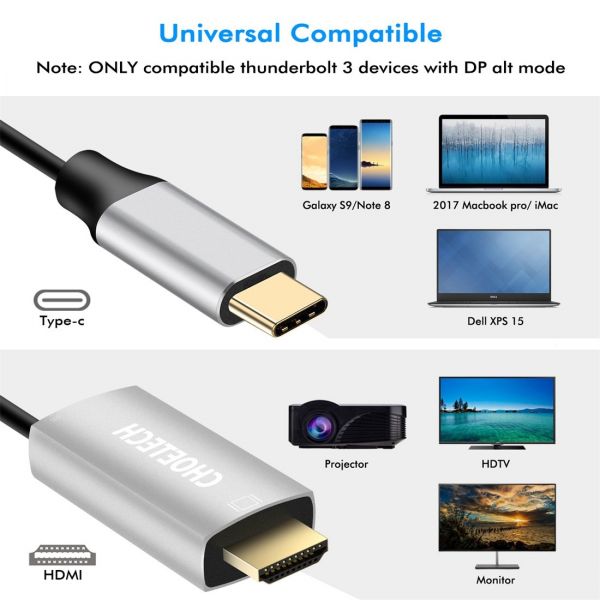 【Compatibility】This hdmi adapter works with USB C(Thunderbolt 3)device with DP alt mode:iPad Pro,2018/2017/2016 MacBook Pro,iMac,2016/2015 MacBook,Chromebook Pixel,Galaxy Note 9/S9/S9+,Note 8/S8/S8+,H