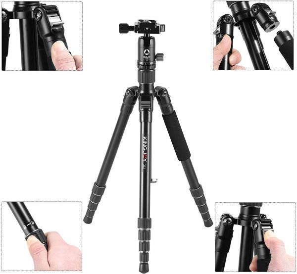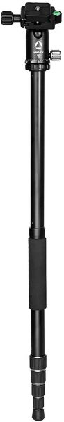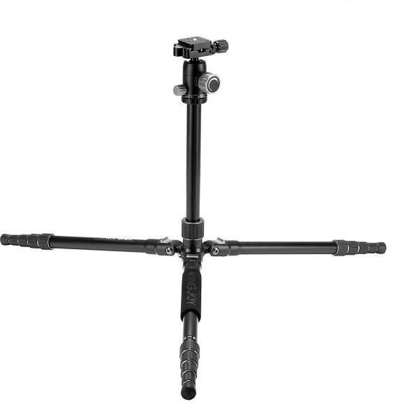 One of the legs can be removed and connect the removable center column used as a monopod. 5-section column leg with quick release locks, giving a more convenient leg handling, satisfying your wanted height when shooting. Quick-release mounting plate helps ensure fast transitions between shots mini ball head for 360-degree rotation and 90-degree tilt. Automatic leg angle adjustment, swiftly positioned at any of 3 locking angles: low, middle or high. Counter-Weight Hook allows you to hang additional weight from the tripod's center of gravity for increased stability. Adjustable and reversible center column, enjoy more freedom for low angle shooting.