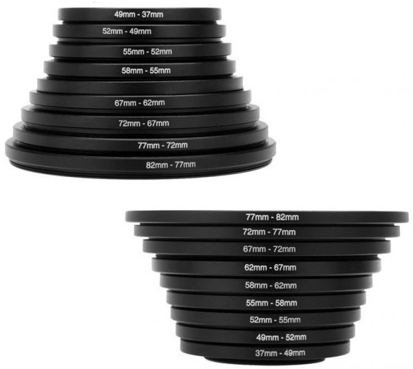 (1) 37mm-49mm Step-up ring x 1 (2) 49mm-37mm Step-down ring x 1