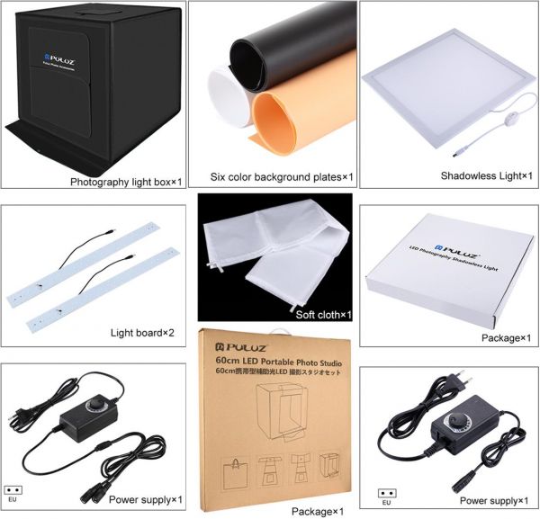 PULUZ 60cm x 60cm folding portable 60W 2 x 1690LM 5500K white lighting studio shooting tent box set