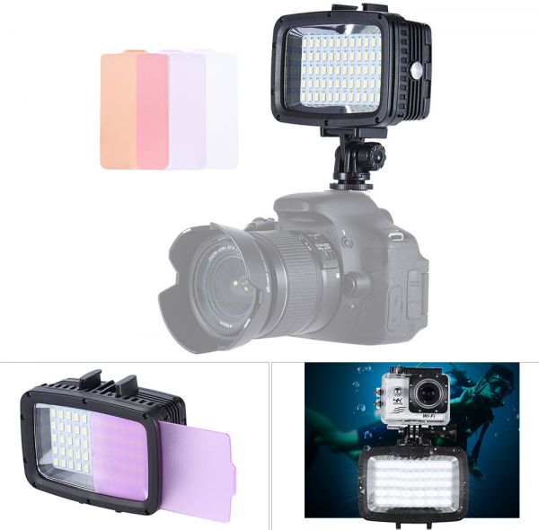 This mini size LED video light is designed for action camera and for DSLR camera, such as for GoPro Hero Xiaomi Yi SJCAM and for Canon Nikon Sony DSLR camera. Waterproof 40m, it can be used for underwater photography. Max. 1800LM, 3 brightness modes, with color filter base, provide different lighting effects for special shootings.