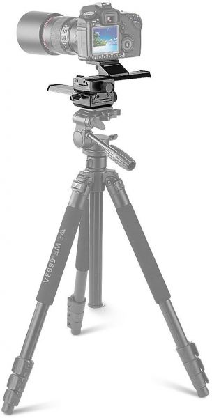 Two 6" rails allow movement in four directions, right, left, forward and backward. Mounts on, and accepts 1/4x20 threaded screws, will fit most tripods and copy stands.