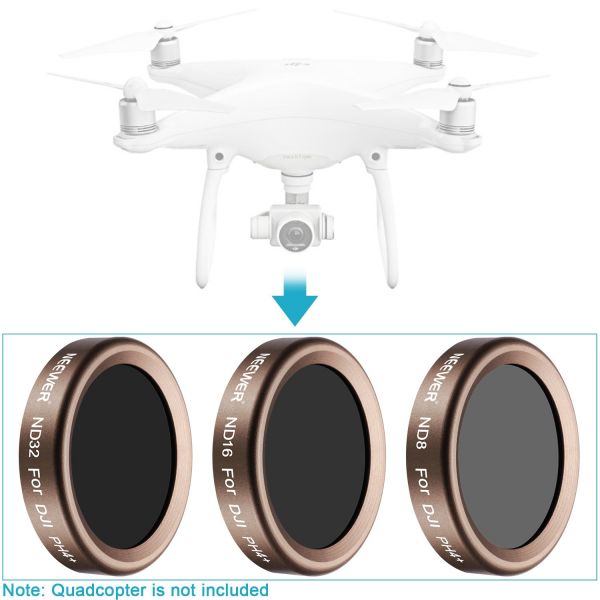NOTE: 1. These filters can be mounted ONLY WHEN the original stock filter is removed. 2. DJI Phantom 4 Pro quadcopter is NOT included .