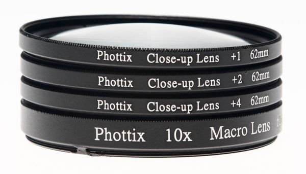Screw the magnification filter onto your lens and achieve 1, 2, 4, 10x magnification