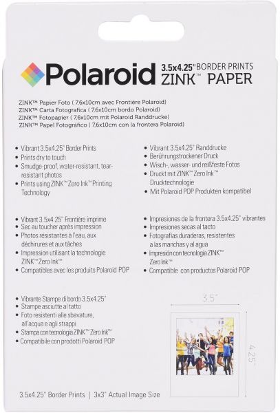 Experience the new revolutionary photo technology with the Polaroid ZINK Photo Paper. The ZINK (Zero Ink Printing Technology) uses just that - no ink! Its advanced composite material uses embedded colorful dye crystals inside, with a protective polymer overcoat layer outside. So, when heat is applied full color images appear like magic on the paper. Unlock the full value of your digital world without any need for ink! Designed for in-the-moment entertainment and fun, the Polaroid Zink photo paper is perfect for printing small format color photo stickers - anywhere, anytime!