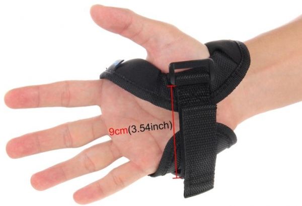 2. Glove style design, can be attached on your hand firmly. Put your thumb finger into the hole and through the velcro tape into the buckle.