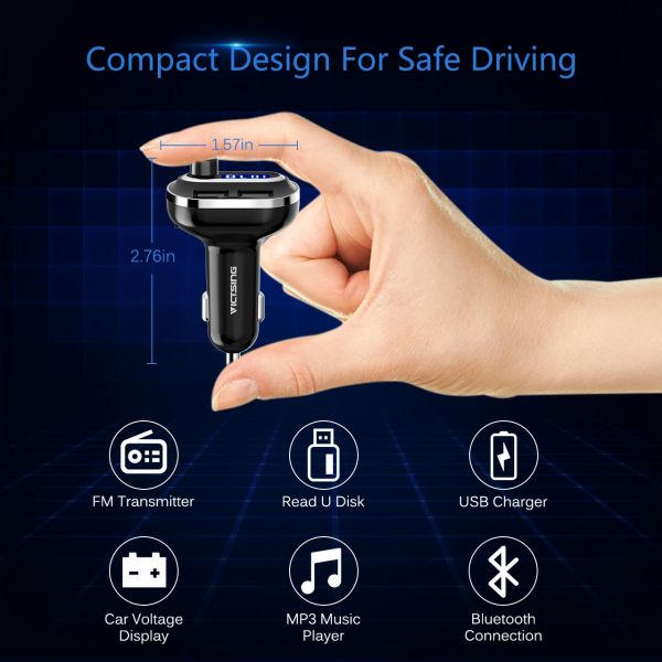 Unlike those bulky transmitters, our FM transmitter is small and space-saving, fitting your car cigarette lighter easily for safe driving.