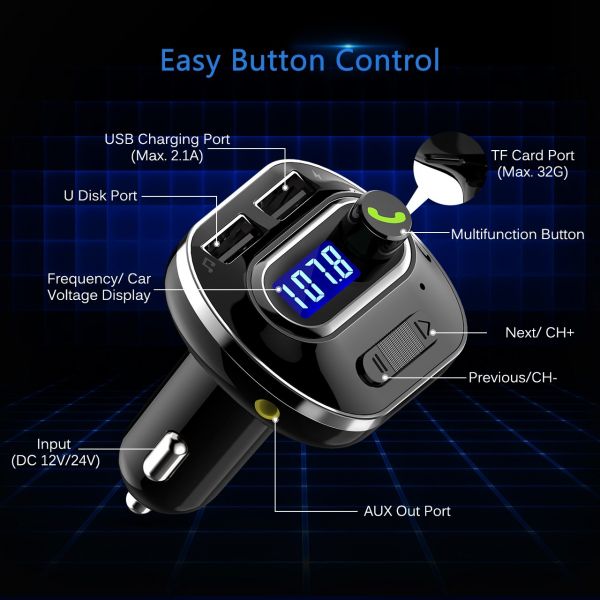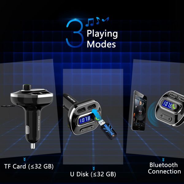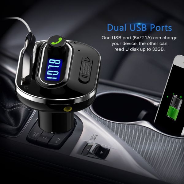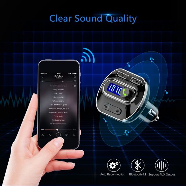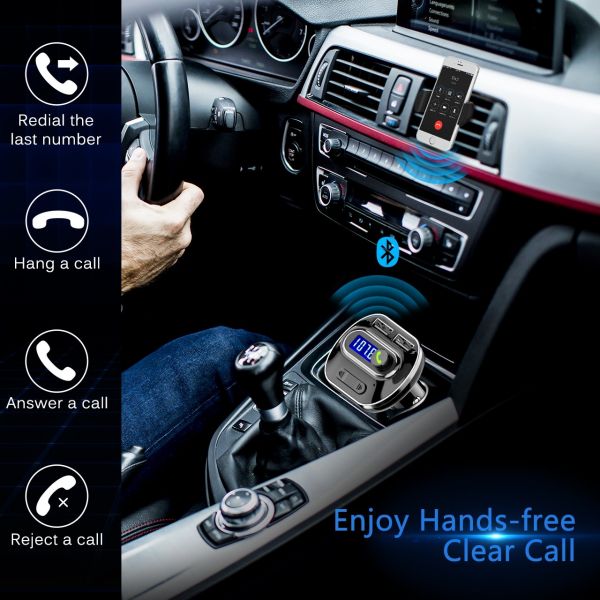 Compared with those Bluetooth 3.0 FM transmitters, our Bluetooth 4.1 FM transmitter ensures more stable signal transmission and promotes clarity for enjoying both music and hands-free phone call.