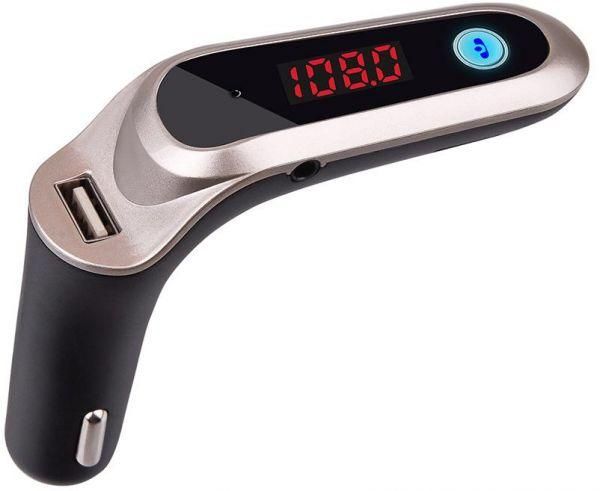 For iPhone 5S 6 6s Samsung S7 Universal Gold Color Bluetooth Car Kit MP3 FM Transmitter USB Charger