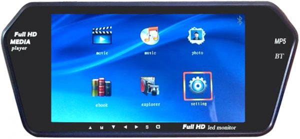 - Details: 7 Inch Multi-Function Mirror Rear View Monitor. Support Full Game Format (pmvb Max 800 x 480p), USB2.0 2. support / tf (max 32g). Built-in speaker. Screen automatically turns off to play music 3 seconds when no operation, will play in the background with a non-dazzling safe driving. Play in the background, play memory when it goes off. Automatic video playback after recovery. Transmitter function FM. E-book reading. Hands free through Bluetooth connection.