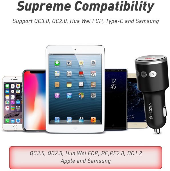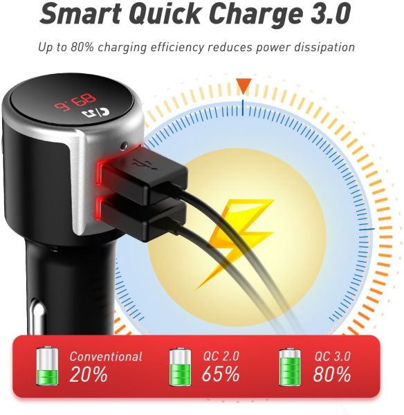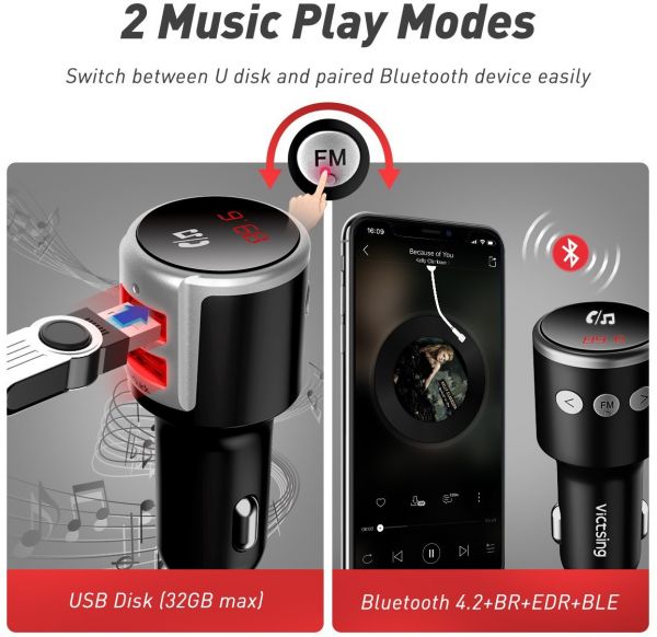 Featuring advanced Bluetooth 4.2 technology and one QC 3.0 speedy charge port, VicTsing Bluetooth FM Transmitter is capable of streaming wonderful music and keeping you connected when you are driving.