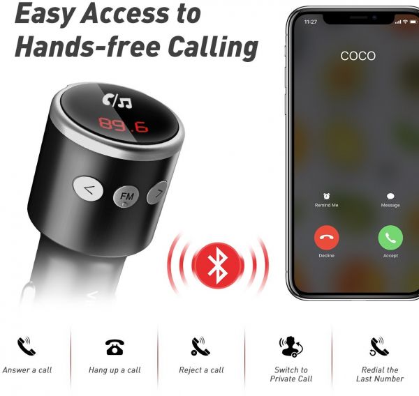 When connected with your phone via Bluetooth, the FM transmitter will announce to navigate on your journey. Enjoy effortless driving.