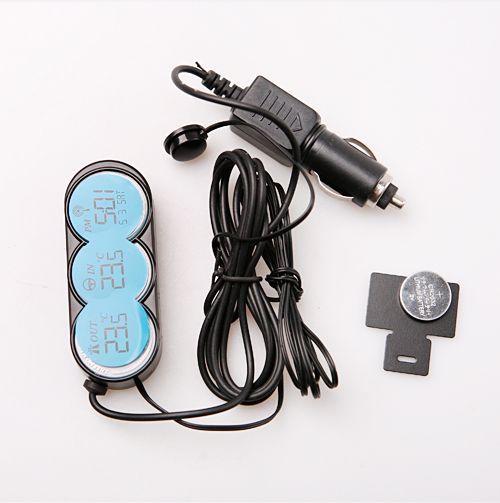 -Backlight and temperature display powered by cigarette lighter charger (plug included).