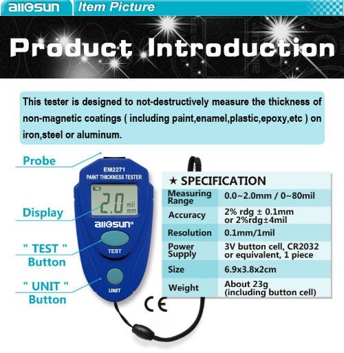 all-sun EM2271 Digital LCD Coating Thickness Gauge Car Painting Thickness Meter paint