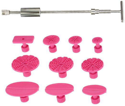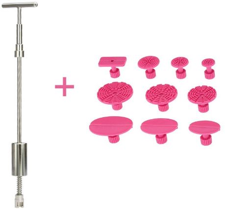 - This car dent remover repair kit includes one slide hammer T bar puller tool and 10pcs of red pulling tabs, which helps you remove dents from car body without damaging the surface or your car.