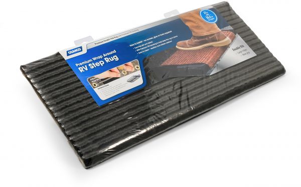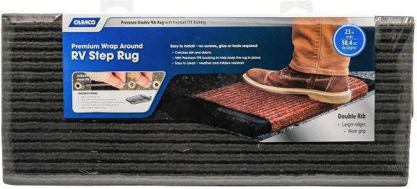 Camco 42956 RV Step Rug (Premium Wrap Around Double Ribbed, 100% Polyester )18" x 23"( - Gray)