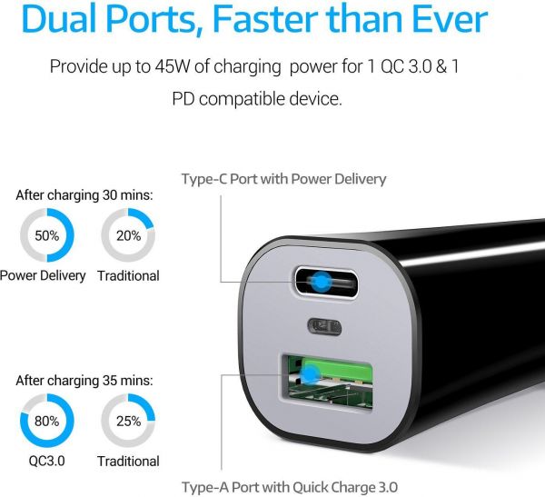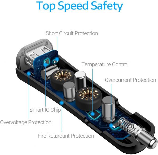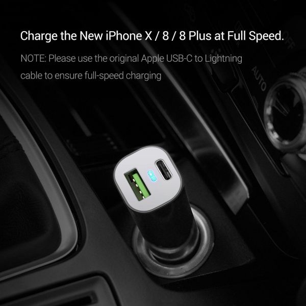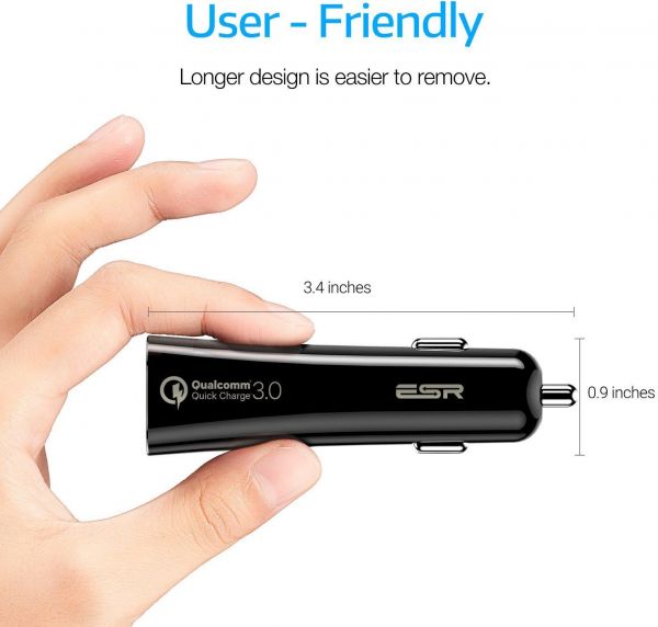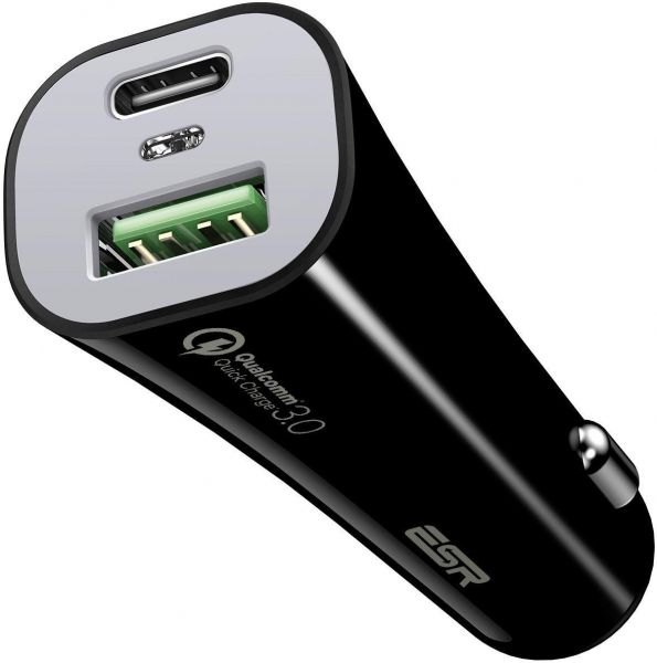 ESR Quick Charge 3.0 2-Port 45W Car Charger with USB Type C Cable - Black