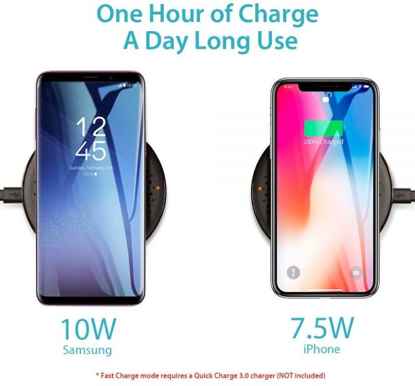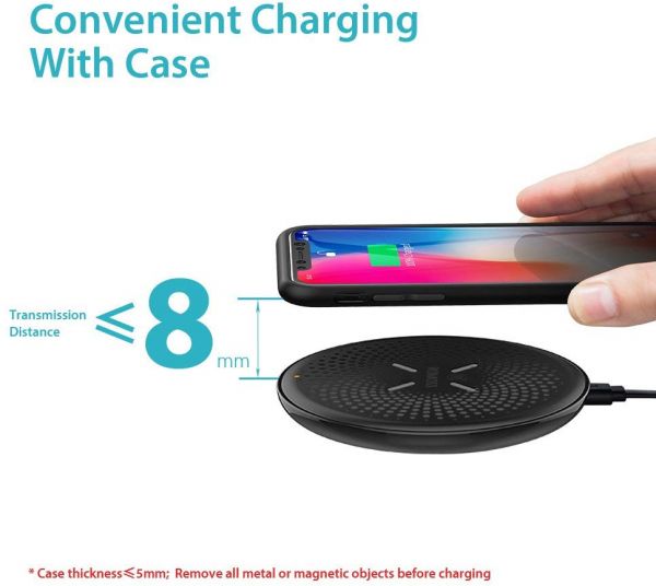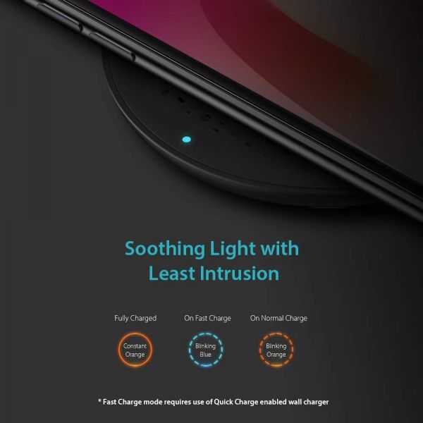 描述:Charges on contact: Simply place your iPhone, Samsung or other Qi-enabled phone on the wireless base and charging will begin on contact. Fast Wireless Charging: Up to 10W of power for charging Samsung Galaxy S9 / S8 / S7 / Note 8. Powers up non-fast charge phones like iPhone X and iPhone 8 at conventional speed. (Please note the wall charge is not included) Night-friendly Smart LED Light: The small LED indicator on the pad easily indicates Fast Charge Mode (Blue light) and Normal Charge Mode (Orange light) without excessive light intrusion at night. Non-slip Charging Pad: The 4 silicone pop-ups in the middle of the base provide a stable surface and avoid possible chances of your device slipping off the pad. What You Get: A ROMOSS wireless charging pad, a 3.3ft/1m micro USB cable (wall charge not included), a user manual