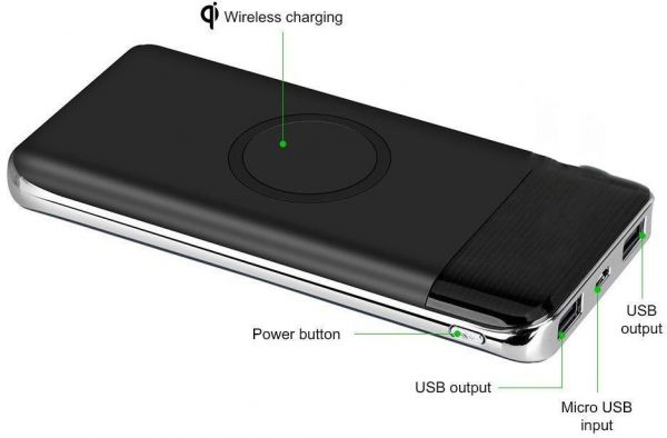 Wireless Charger Power Bank, MOMAX 10000mAh Portable power bank Charger QI Wireless Charging Pad for For iPhone ,Samsung and More with 2 USB Outputs 5V 2.1A (Black)