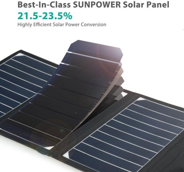 HIGH ENERGY CONVERSION: SUNPOWER highly efficient solar cells convert up to 21.5-23.5 of solar power into free energy. Charge up to two USB devices simultaneously and forget what it feels like to have to look for a socket.