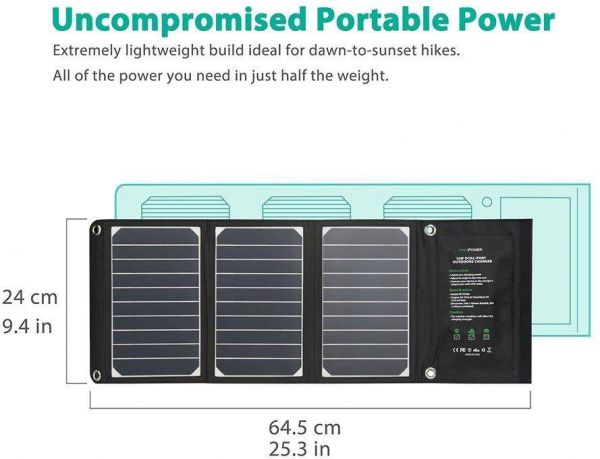 COMPACT SIZE: One of the most compact solar chargers on the market. Benefit from free solar energy in a lightweight foldable format you can always carry with you no matter where you go.