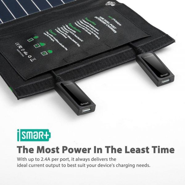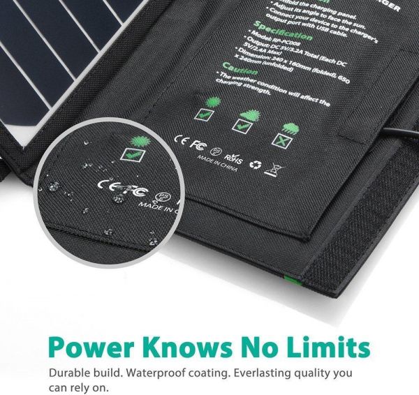 QUALITY YOU CAN COUNT ON: A waterproof sewn rugged polyester canvas for a weather-resistant device that won't let you down when you need it most. 4 hooks to best capture sunlight. 2 iSmart USB ports to charge your devices with.