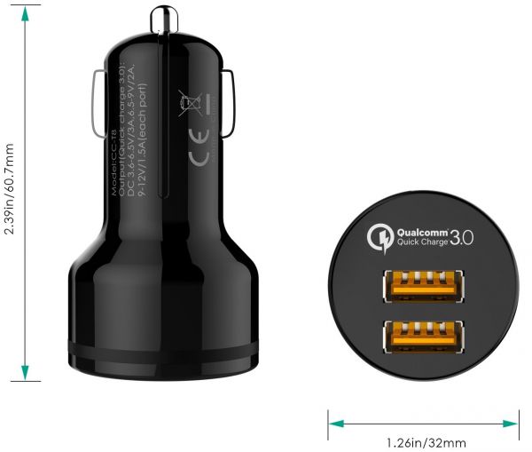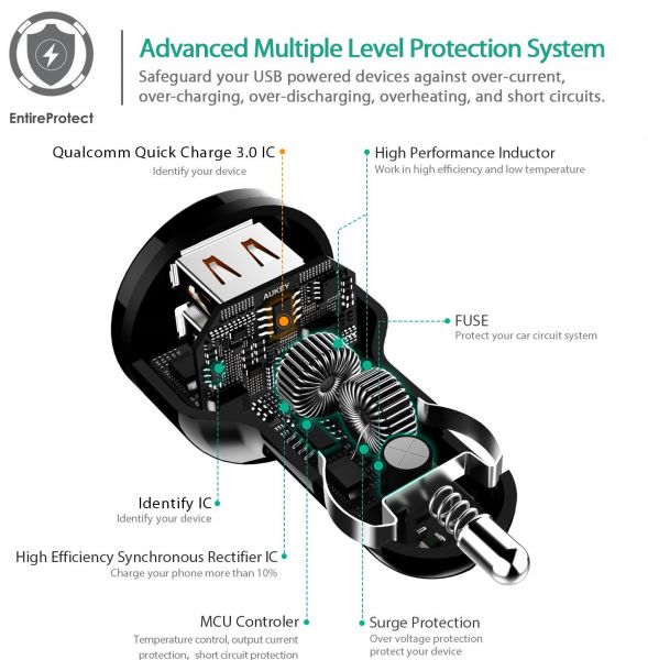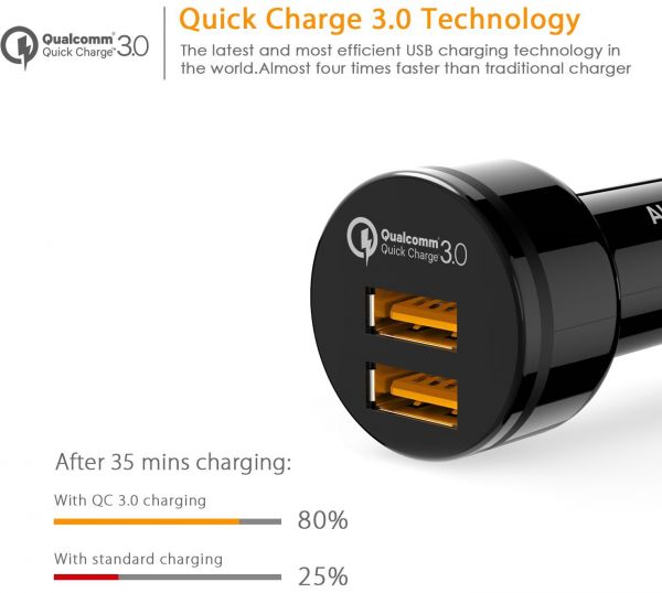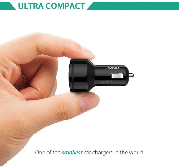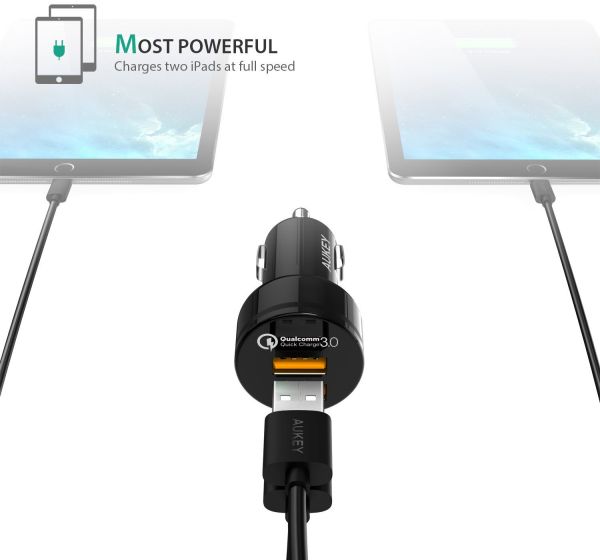 AUKEY Car Charger with Dual Quick Charge 3.0 Ports and Micro-USB Cable