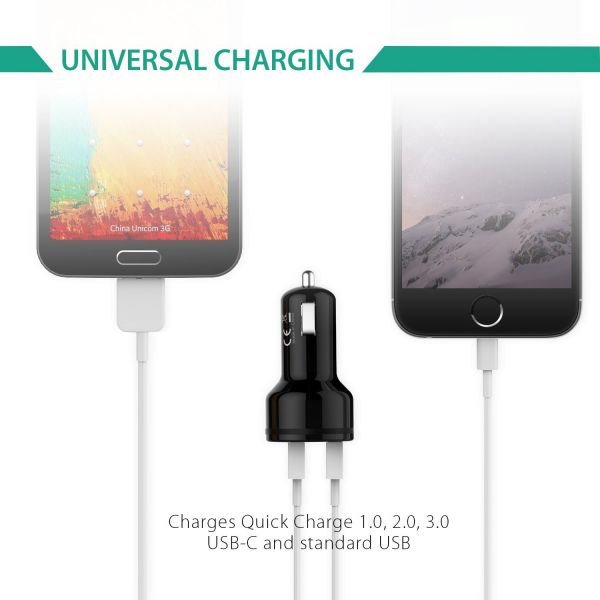Compatible with all USB powered devices including Quick Charge 2.0 & Apple phones & tablets