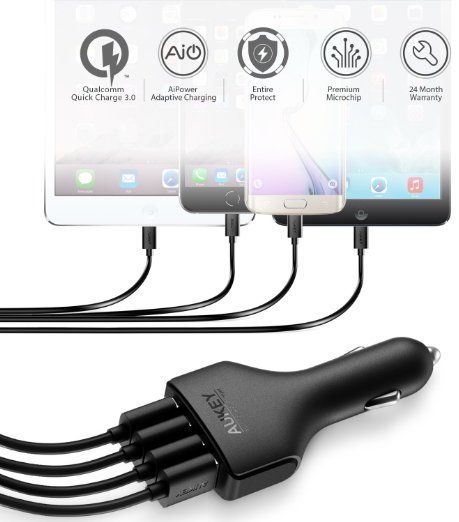 描述:Charge compatible devices up to 4x faster with Qualcomm Quick Charge 3.0 Technology Quick Charge 3.0 port 3 AiPower Adaptive Charging ports with dedicated 2.4A output each Compatible with all USB powered devices including Quick Charge 2.0 & Apple phones & tablets Built-in safeguards protect your devices against excessive current, overheating, and overcharging
