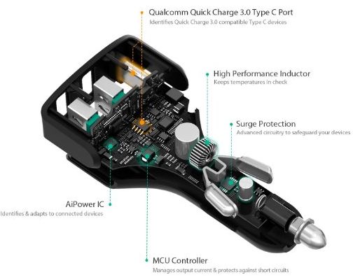 描述:Charge compatible devices up to 4x faster with Qualcomm Quick Charge 3.0 Technology Quick Charge 3.0 USB-C port Dual AiPower Adaptive Charging ports with dedicated 2.4A each Compatible with all USB powered devices including Quick Charge 2.0 & Apple phones & tablets Built-in safeguards protect your devices against excessive current, overheating, and overcharging