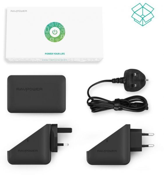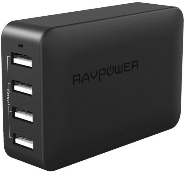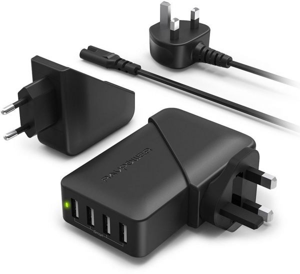 USB Charger Plug RAVPower 4-Port 40W / 8A Travel Adaptor (EU + UK Adapter Interchangeable, CE/FCC/Ro