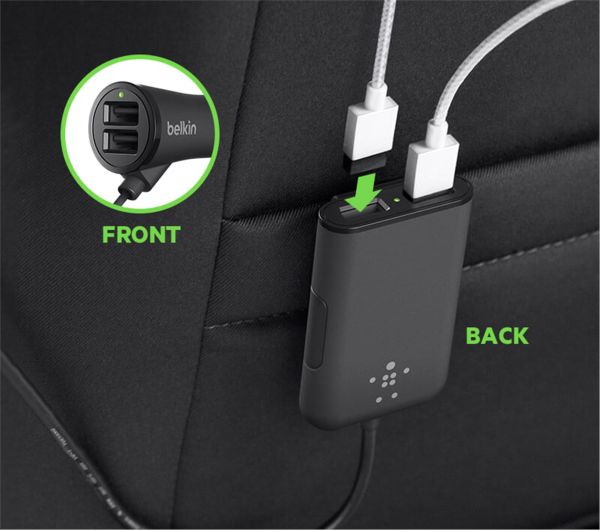 Belkin Road Rockstar 4 Port USB 7.2 Amp 32 Watt Car Charger with Backseat Pass through for Mobile Ph