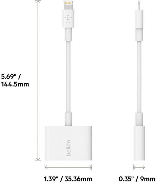 Offering a sophisticated charger with a versatile dual functionality is the Belkin Audio + Charge Rockstar 3.5 mm iPhone Adapter - White, F8J212BT. The Belkin iPhone Adapter is available in a white sleek and functional design. The cable attached to the adapter is constructed from TPE materials, making it simultaneously flexible and soft. This adapter is made to be compatible with the Apple iPhone X, iPhone 8 Plus, iPhone 8, iPhone 7 Plus as well as the iPhone 7. Furthermore, you can use the adapter even with a remote control.