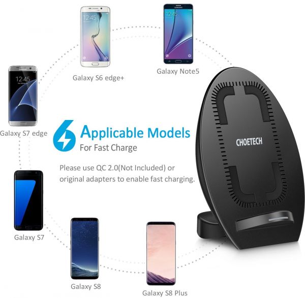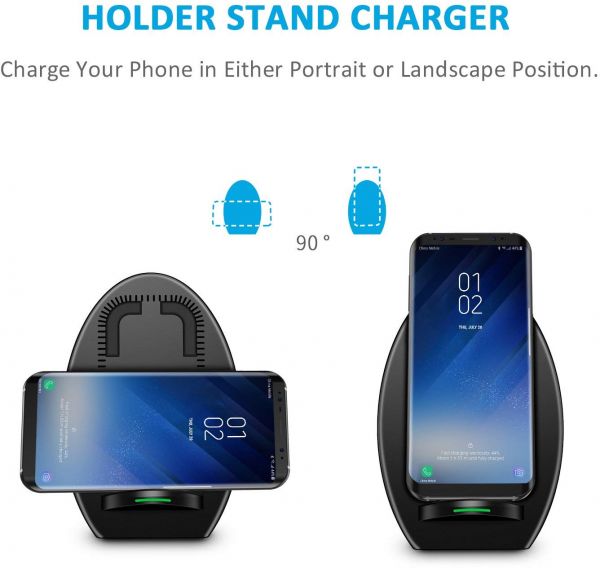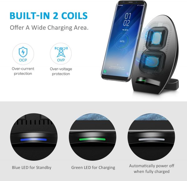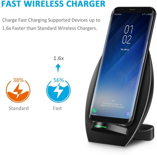 Works with Qi-enabled devices (blue light for standby mode, green light for charging mode). Fast Charge Mode only available for the Samsung Galaxy S9, S9 Plus,Note 8, Note 5, S6 Edge+, S7 and S7 Edge, S8 and S8 Plus. Other Qi-enabled devices such as iPhone Xs/ Xs Max/ Xr, iPhone 8, 8 Plus, iPhone X, S6, S6 Edge, Nokia 9, Nexus 5/6 will charge at standard speed.(Otter box phone case must be removed)