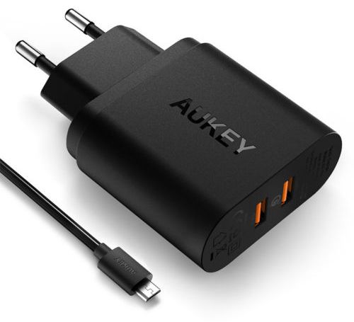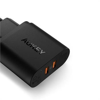Aukey Quick Charge 3.0 charger protects your devices against excessive current, overheating, and overcharging. Buy this Aukey charger here at Souq.com.The Aukey PA-T16 USB Wall Charger keeps your Quick Charge and other USB-enabled devices charged wherever you go. It incorporates Quick Charge 3.0 technology to quickly juice up the compatible devices so that they stay unplugged for longer. It also works with devices supporting Quick Charge 2.0 technology and optimally charges all standard USB-powered devices. With its two high-speed port, the Aukey PA-T16 USB wall charger lets you connect two devices simultaneously. Furthermore, it can be used to charge regular USB-powered Android and Apple devices at up to 2.4A.