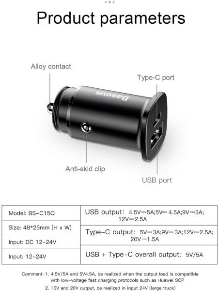 -Output Type C PD : 5V/3A,9V/3A,12V/2.5A,15V/2A,20V/1.5A