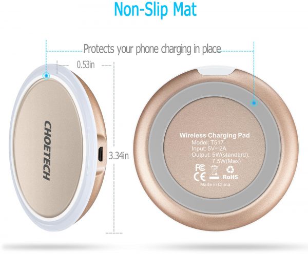 The qi wireless charger is compact in size and has rubber grip on its top