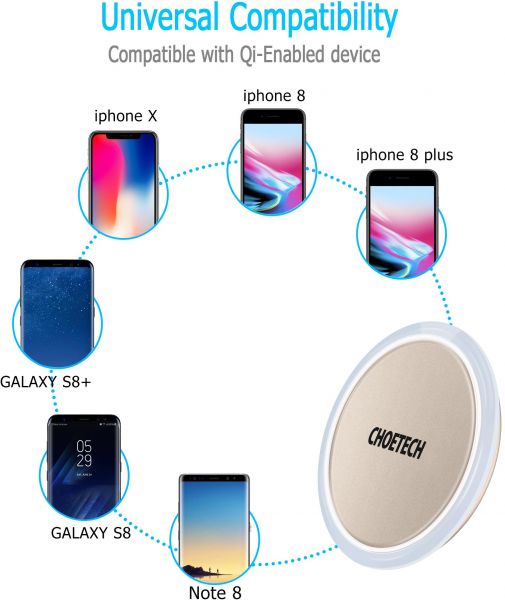【Wide Compatibility】Charging popular compatible devices like Apple iPhone 8/ iPhone 8 Plus/ iPhone X /Samsung Galaxy Note 8 /S8 /S8 Plus and other Qi-enabled devices at a standard 5W speed . (NOT for iWatch)