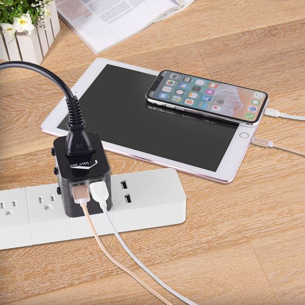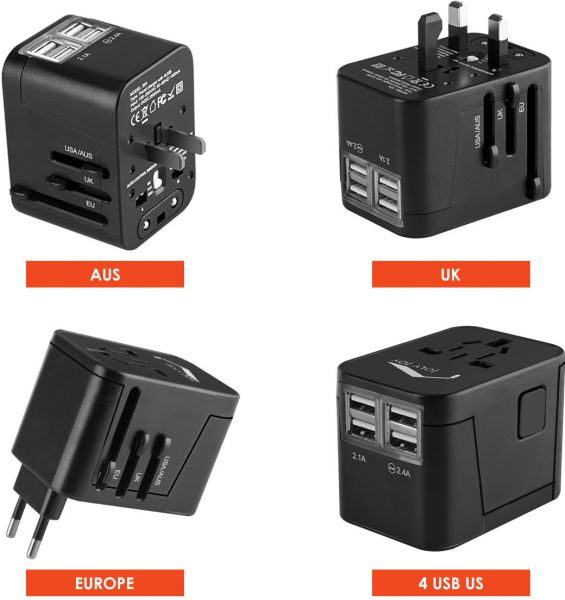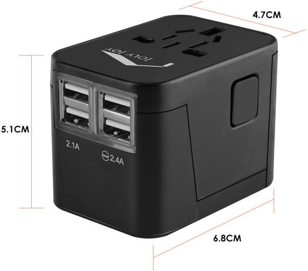 描述:- INTERNATIONAL PLUGS - This universal travel adapter is integrated with standard US/UK/EU/AUS plugs (AC input 100V-240V, MAX 6A) and 4 USB ports (total output 5V / 3.5A). So you can use it wordwide as a small charging station without any more converter.