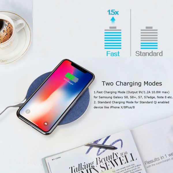 * Two Charging Modes:Standard Charge for iPhone X iPhone 8 iPhone 8 Plus and Fast Wireless Charging Pad for Samsung Galaxy Note 8 S8 Plus S8+ S8 S7 S7 Edge Note 5.