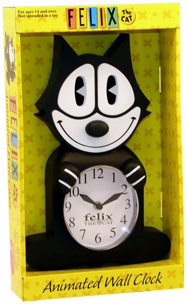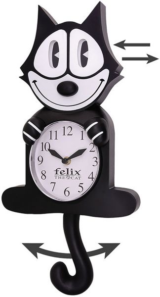 A classic clock that has endured through the years, it never goes out of style! A perfect collectible clock for fans of any age. Felix the Cat clock is a continued favorite worldwide. Its big happy eyes move back and forth along with his big bushy tail. It can hang on the wall of any office, room or in kid's room.