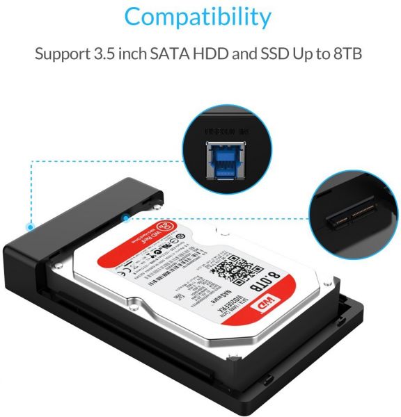 Computer/laptop accessory The ORICO 3588US3 3.5 inch hard drive enclosure, or support casing, can support almost any 3.5 inch SATA I, SATA II, SATA III Hard Disk Drive or Solid State Drive up to a whopping maximum of 8 Terabytes! This device is compatible with most operating systems including Windows, Macintosh, Linux and Unix running on Desktops or Laptops.