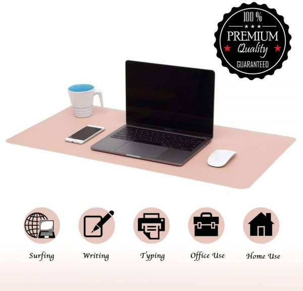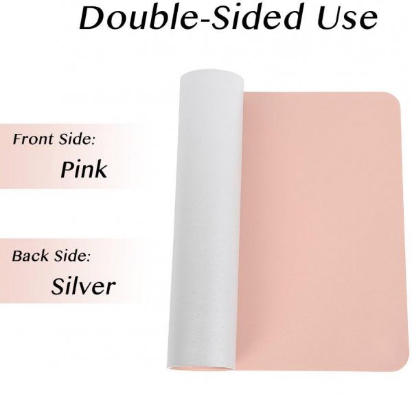 - The PU Leather Desk Pad is specifically designed that it can be used on both sides, just turn it over and you can utilize it ,the pad has 2 colors, Pink(Pink+Silver)