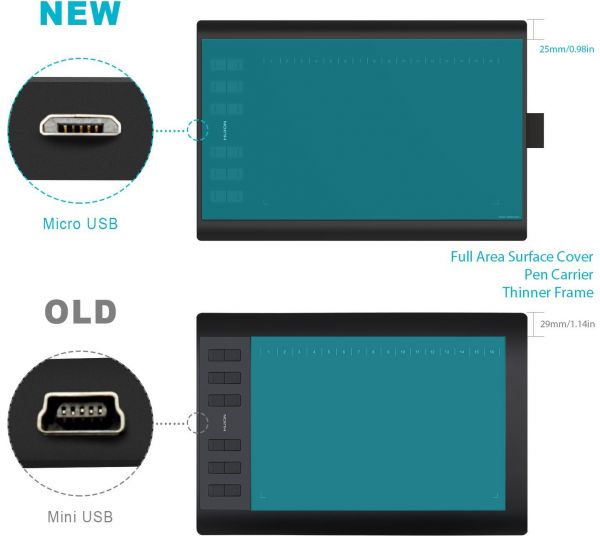 - Difference With The Original 1060Plus Digital Tablet In Appearance - Full-Area Surface Cover, Pen Carrier, And Thinner Border, Which Makes The Drawing Surface Bigger. Quieter Express Keys, Better Linearity In Art Programs, Better Pen Pressure Sensitivity.