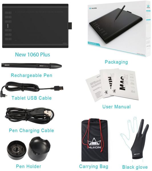 - Free Gifts - 1 Carrying Case That Guards Your Huion Graphics Tablet From Scratches And Scrapes, 1 Glove That Reduces The Friction Between Your Hand And The Tablet Surface.